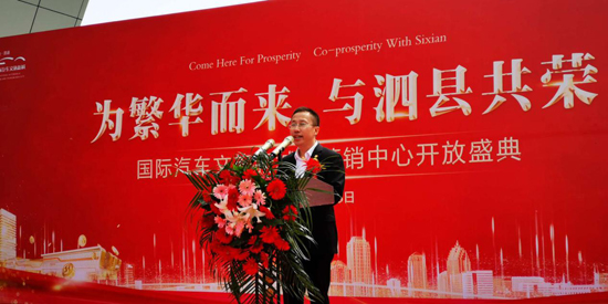 紧接着,多金集团副总裁、多金泗县国际汽车文旅新城项目总经理余安云先生致辞发言,余总首先对能够在百忙之中参与本次开放活动的嘉宾及领导和媒体朋友表示衷心感谢,余总表示:今天,是中国多金的大日子!也是多金泗县国际汽车文旅新城发展史上一个值得纪念的日子!在各级各部门政府领导的关心下,在汽车行业协会组织的全力推动下,在合作伙伴的鼎力支持下,经过精心筹备,多金泗县国际汽车文旅新城今天终于迎来了营销中心盛大开放!这是项目建设过程中的重要一环,正式向泗县人民展示她的发展和未来,也是一个新的起点。将以“一座汽车城,一个新核心”的坚定信念,为泗县人民服务,为泗县汽车行业发展助力。