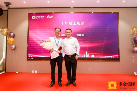 企业成长发展离不开一群坚守岗位、默默奋斗的人,他们与多金风雨同舟,感恩同行。在今天这个特别的日子里,多金为五年和十年老员工进行“授勋”。 12名五年司龄和1名10年司龄的老员工分别被授予银质和金质司徽,这一枚枚象征荣誉的特殊司徽镌刻着老员工的奉献与忠诚,见证所有老员工在多金的成长与发展、责任与担当!