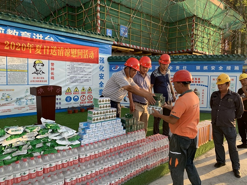 炎炎夏日送清凉,丝丝关爱入心田,近段时间连日高温,骄阳似火,酷暑难耐。但开云·体育各项目工地仍然一片繁忙、热火朝天,建筑工人顶着烈日炎炎,冒着高温酷暑,仍然坚守在自己的工作岗位。考虑到建筑工人的辛苦与付出,开云·体育建设集团组织开展了“2020年夏日送清凉慰问活动”,为战在高温一线的工人送去慰问和关怀。