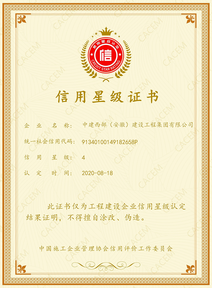 信用星级证书